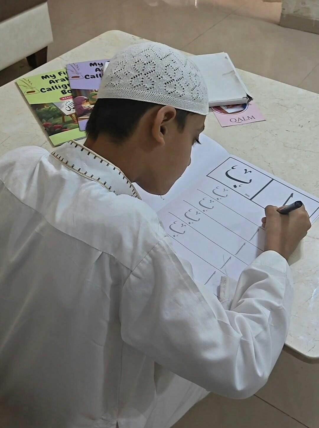 It is easy to follow along and make good progress in learning arabic calligraphy. The activities spread throughout the book make it a fun learning